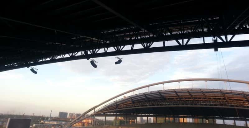 淮安市体育中心占地面积达650亩。主要建筑内容包括30000座的体育场、6000座的体育馆、1500座的游泳馆、以及3.2万平方米的省会指挥中心和室外练习场、停车场等配套设施,总建筑面积为20多万平方米。我公司自承接该项目以来就根据其自身场馆特性设计了一套完整合理的音响扩声系统,力求完美交付,满足比赛、大型集会以及商业演出的使用功能。